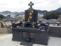 十字架を彫刻するのが象徴的でデザインは横型が多く、マリア様を設置することもあります。